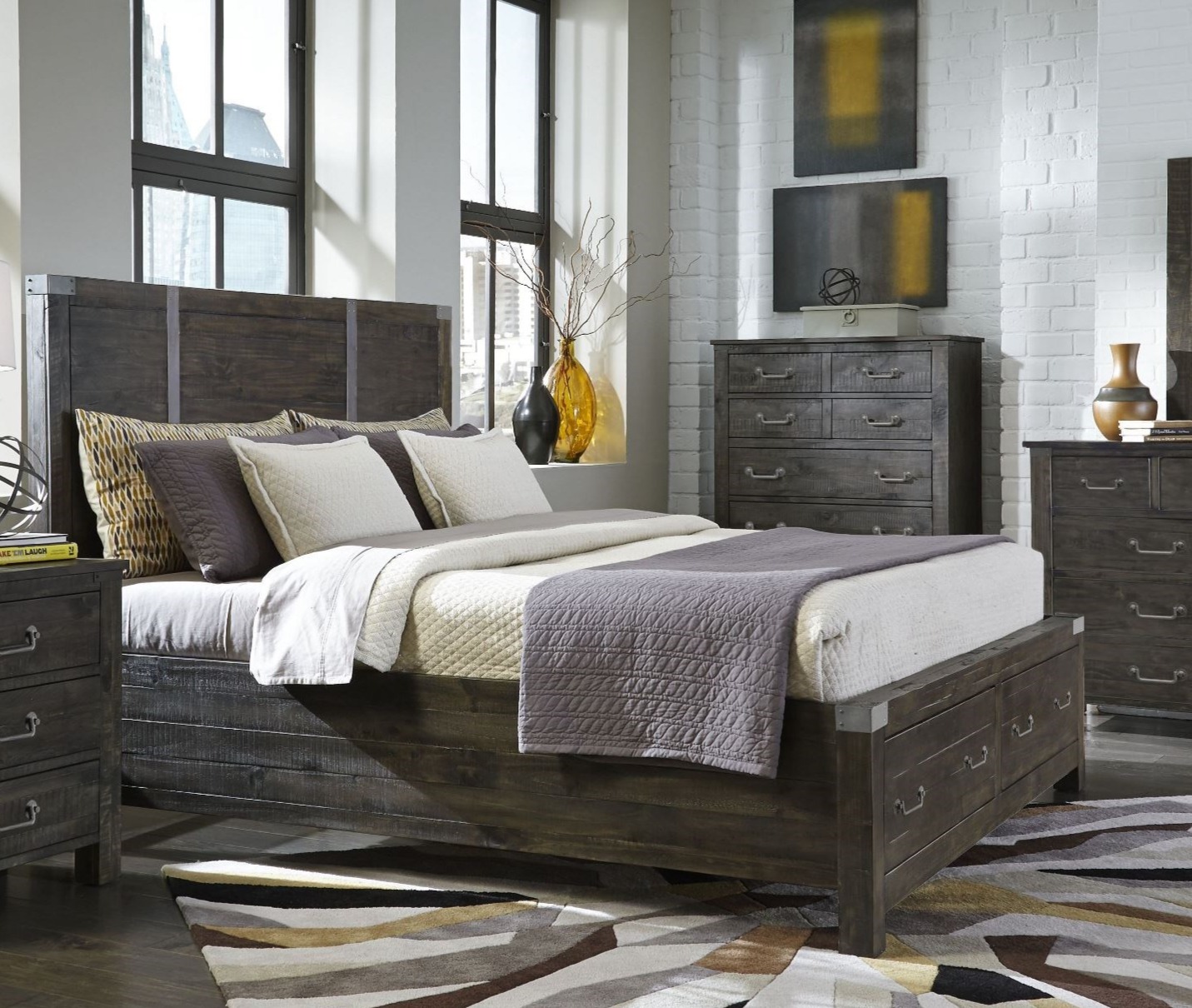 Transitional styling in a welcoming weathered charcoal finish and rustic aged iron hardware create Abington’s hospitable allure. In rustic pine solids, this hardworking collection is chock full of unique details, including sliding doors, adjustable shelves, and perfectly proportioned bed canopies. Rustic enough for a loft or retreat, yet sophisticated enough for the uptown industrialist, Abington is an ideal choice.