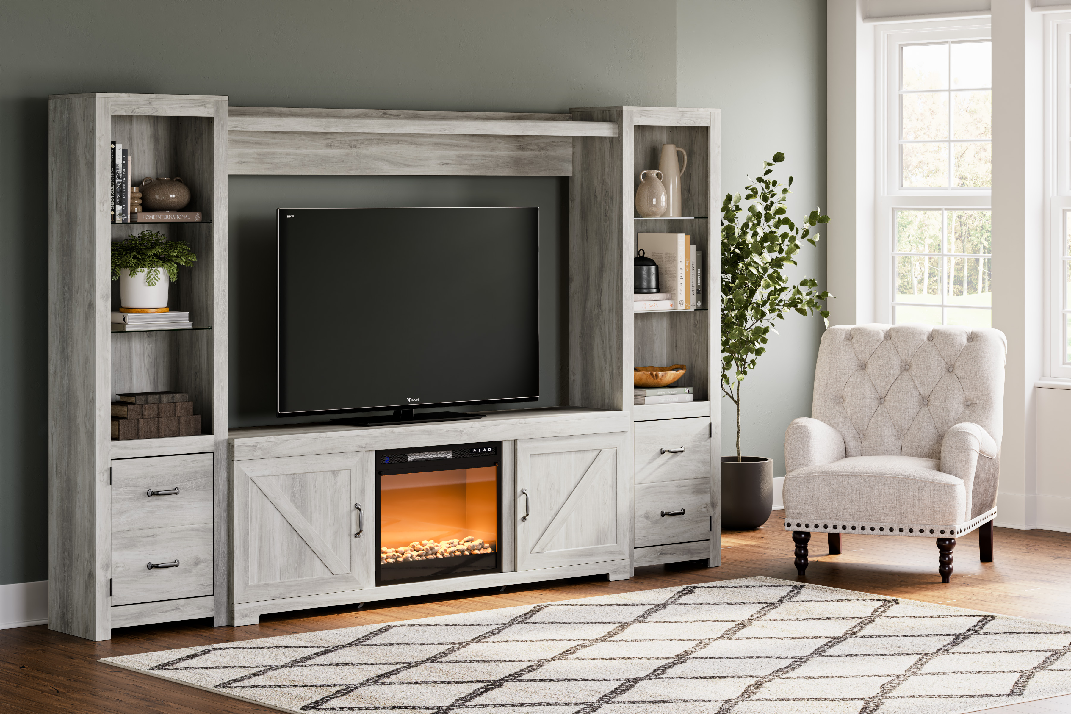 Bellaby Whitewash 4-PC Entertainment Center With Electric Fireplace