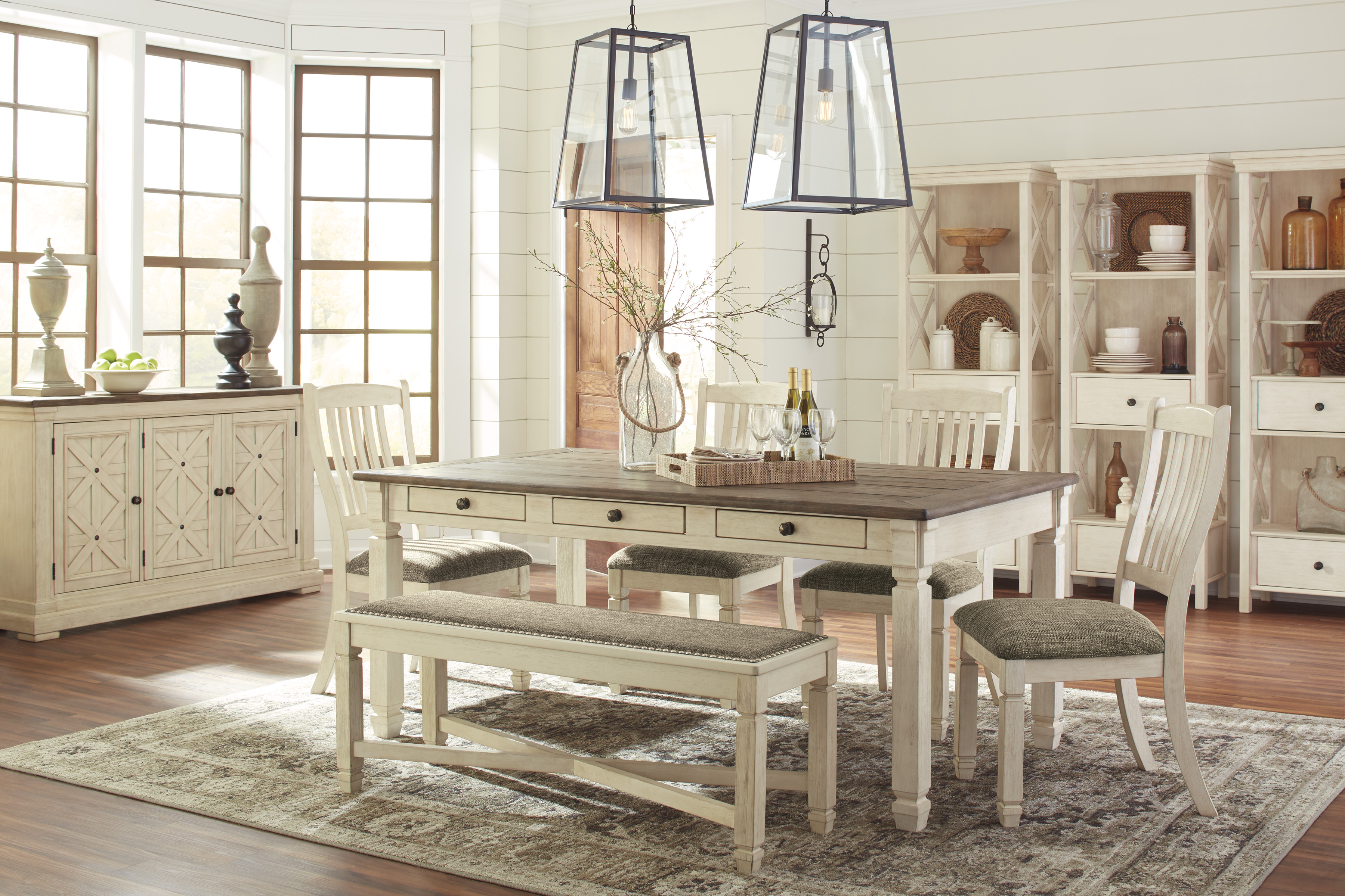 Includes: Dining Table, 4 Chairs & Bench