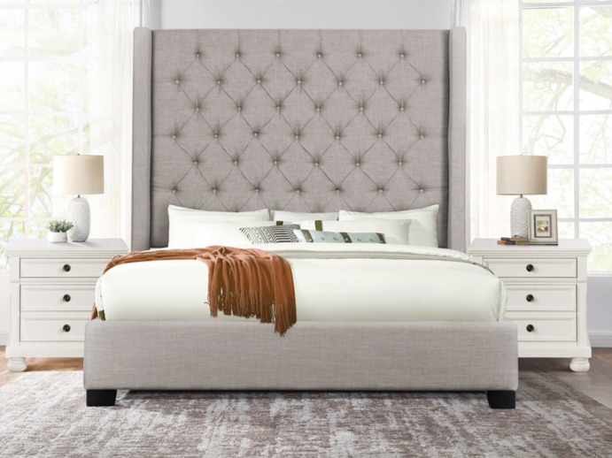 Grey Upholstered Tufted Bed