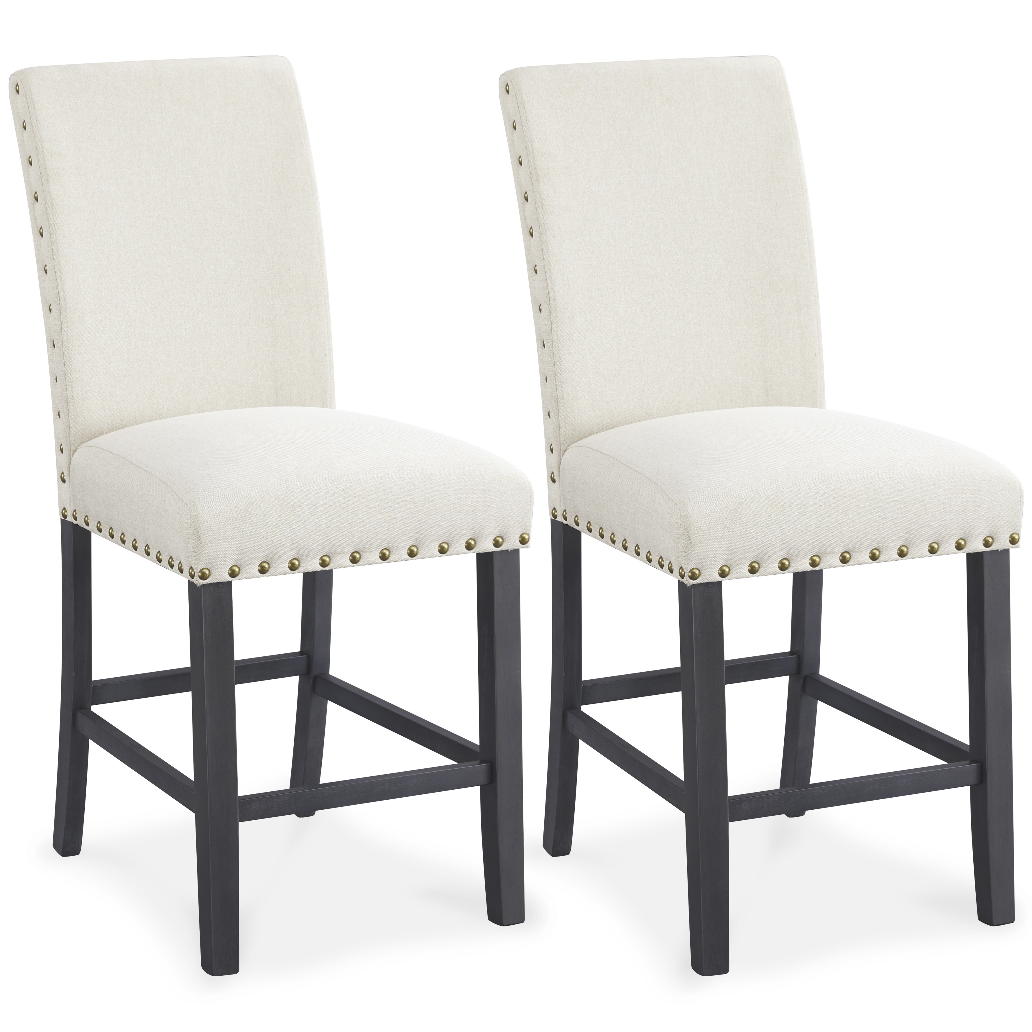 This bar stool takes a stance for refined style with a relaxed sensibility. A rich, dark finish and nailhead trim punctuating the softly neutral upholstery are key ingredients in the finely informal presentation.