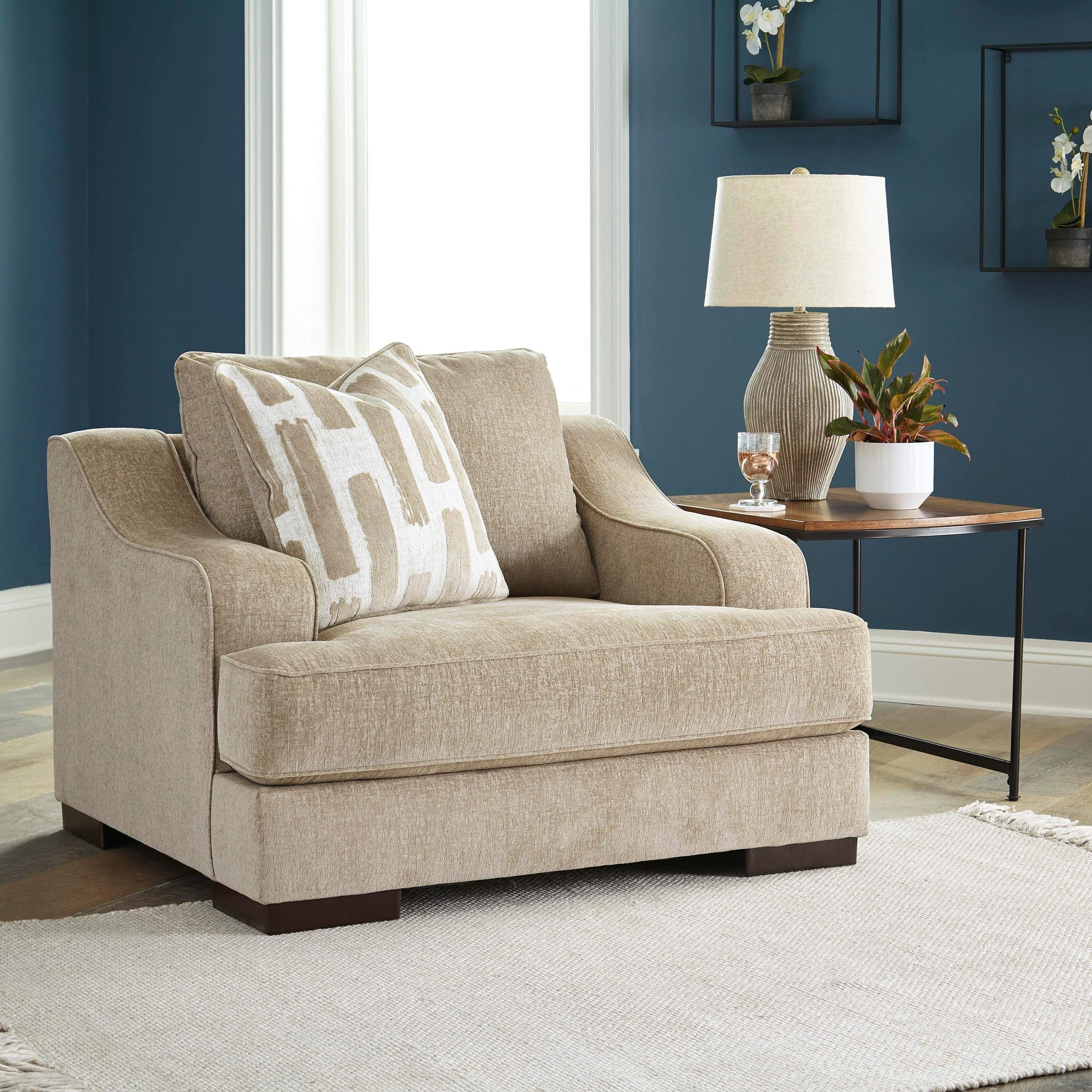 With a comfy, cozy aesthetic, this oversized chair is warm and welcoming in a neutral beige hue. Softly curved slope arms add a polished touch to the irresistibly plush cushions. Whether you're curling up with a book or tuning in to TV, this piece brings subtle charm to your space.