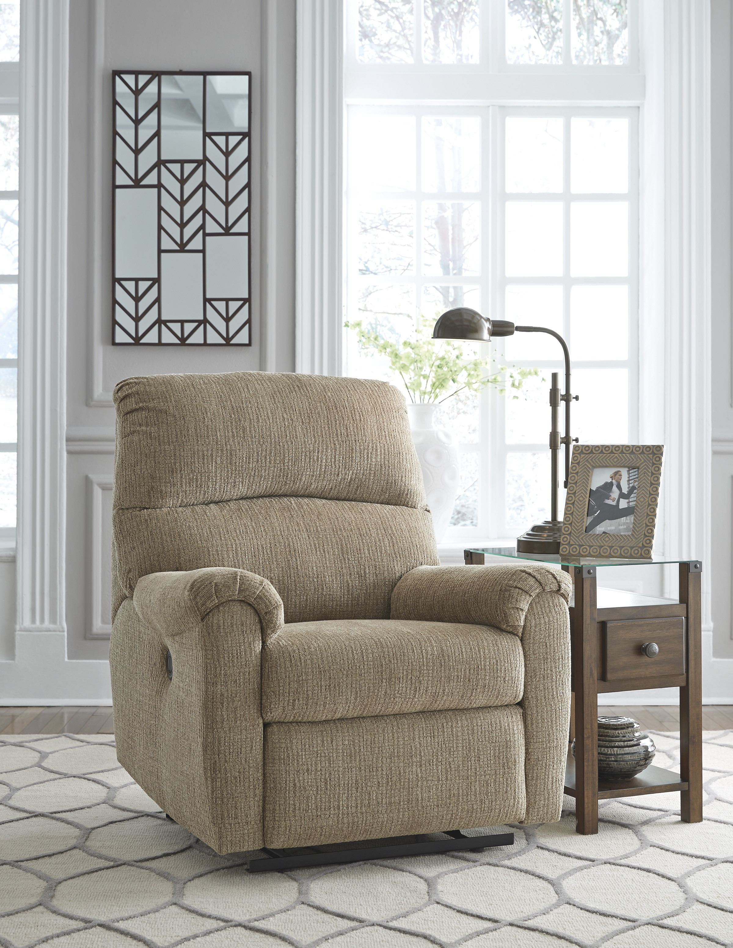 If you’ve got a penchant for simple, contemporary beauty, this power recliner has your name written all over it. One-touch power control means any position is yours – whether fully reclined or sitting upright. The pillow top arms and back cushion surround your body in luxurious, plush chenille that’s irresistible to the touch. Mocha colored upholstery makes it easy to match with other modern decor for a fashionable and comfortable space.