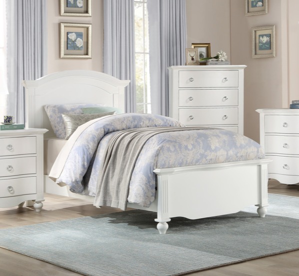 Your child’s bedroom is their space to grow, learn and play. The elegant, yet whimsical, styling of the Meghan Collection will provide the platform from which they will enjoy those experiences for years to come. Design elements that lend to a traditional look include, white finish, routed pilasters, turned feet and curved base rails. Your child will love the twin panel bed, with its classic look providing stylish accent to their space.