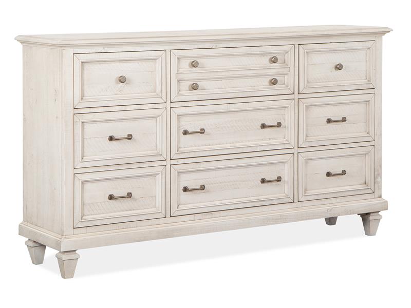 Inspired by the architecture and landscape of California Wine Country, the Newport bedroom collection exudes the ambience of laid-back luxury. Crafted of high-low Pine and Pine Solids, the soft Alabaster finish and Brushed Pewter hardware mix effortlessly with graceful turned legs and designer details to create a look that is bold yet inviting. Adding a casual and coastal resort flair, Shutter wood doors are used on select pieces. Crisp and updated, Newport promises long-lasting design and sturdy construction for any relaxed setting.