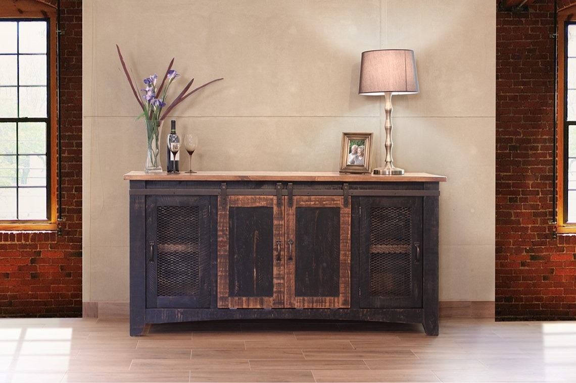 • Two tone, multi-step lacquer finish. Weathered black finish on hand- distressed wood.