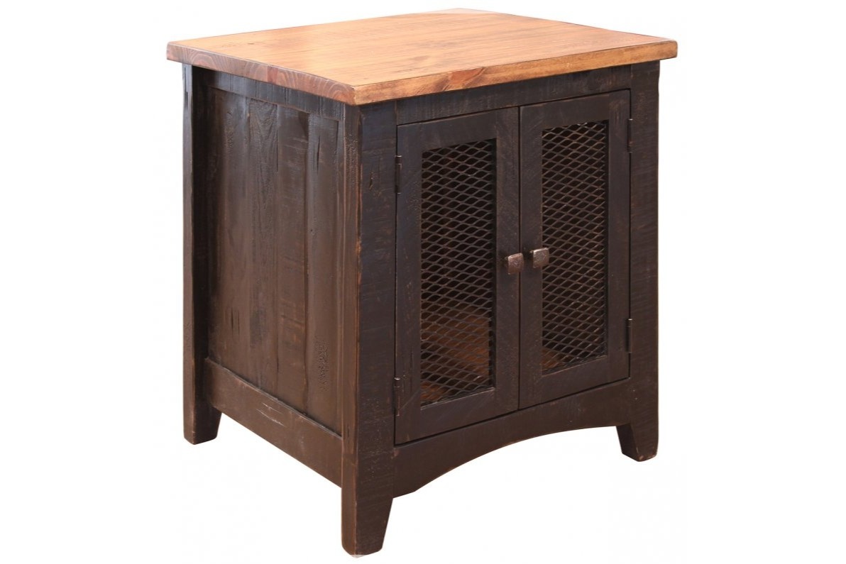 - Multi step Black finish on distressed wood. Tops feature a medium brown stain that provides depth and character to solid pine.