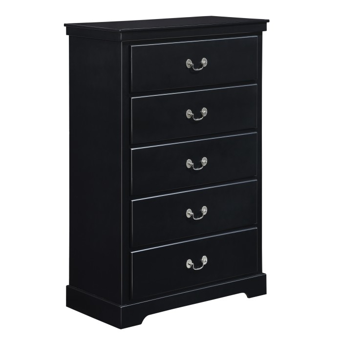 Merging traditional and transitional design creates the look of the Seabright collection, providing a unique platform from which to style your bedroom. The black painted finish allows for excellent versatility of placement and decorative inspiration. The traditional styling of the satin nickel bale and pull hardware complements the chest lending to the classic profile.