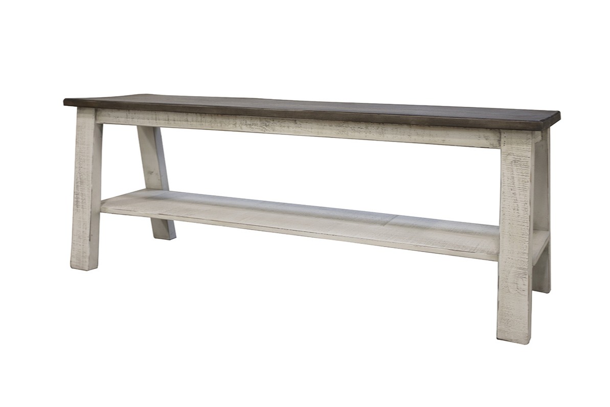 - Two-tone finish features a hand-rubbed finish in off-white, and tops are finished in a beautiful warm gray stain.
