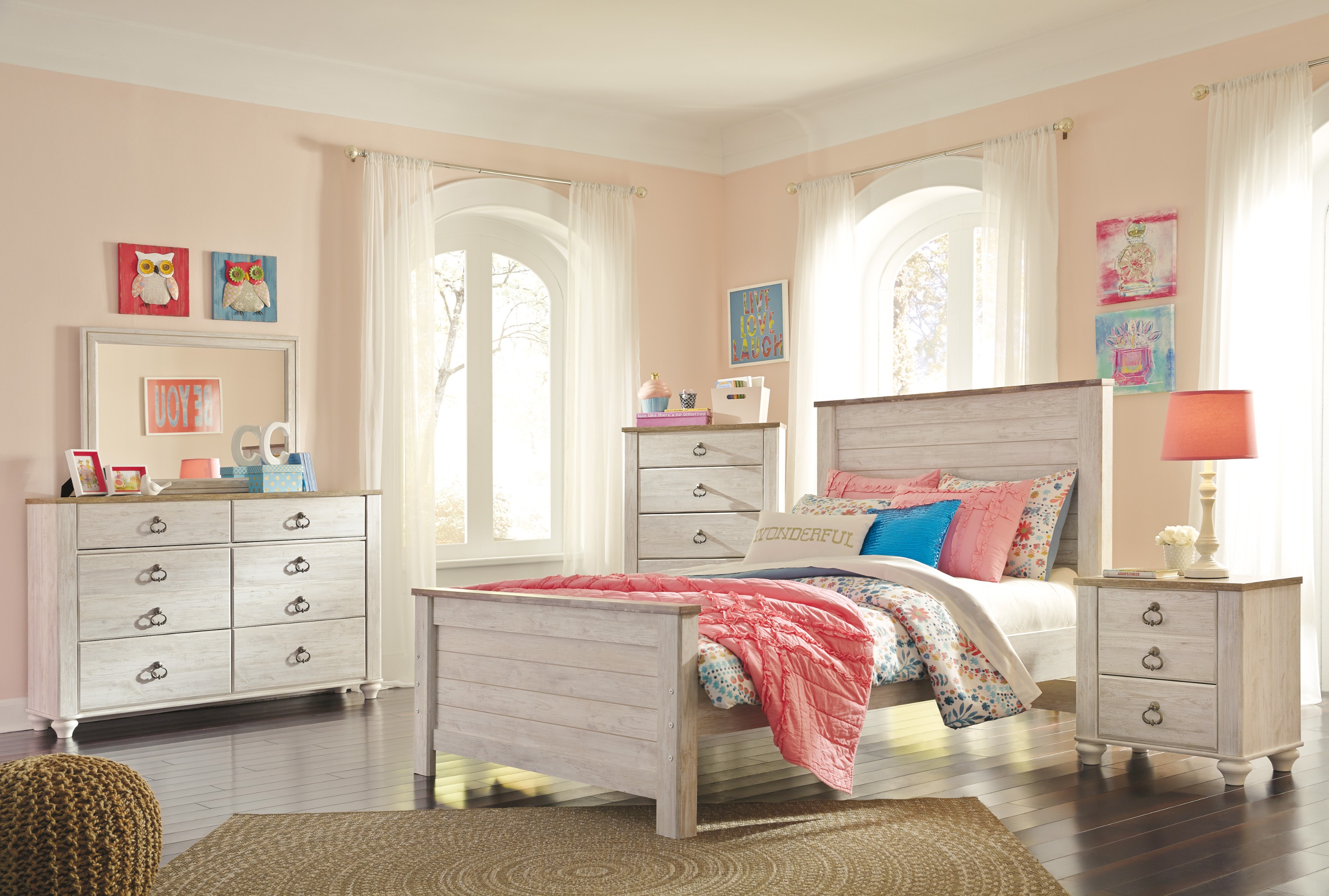 Twin Panel Bed, Dresser, Mirror, & NightstandUpgrade to Full for Only $30!Click Here for HD Image!SKU: B267 > Click Here to See More of This Collection! <Willowton Twin Panel Bedroom SetPriceFrom $965.00Bedroom Set OptionsSelectAdd to Cart
