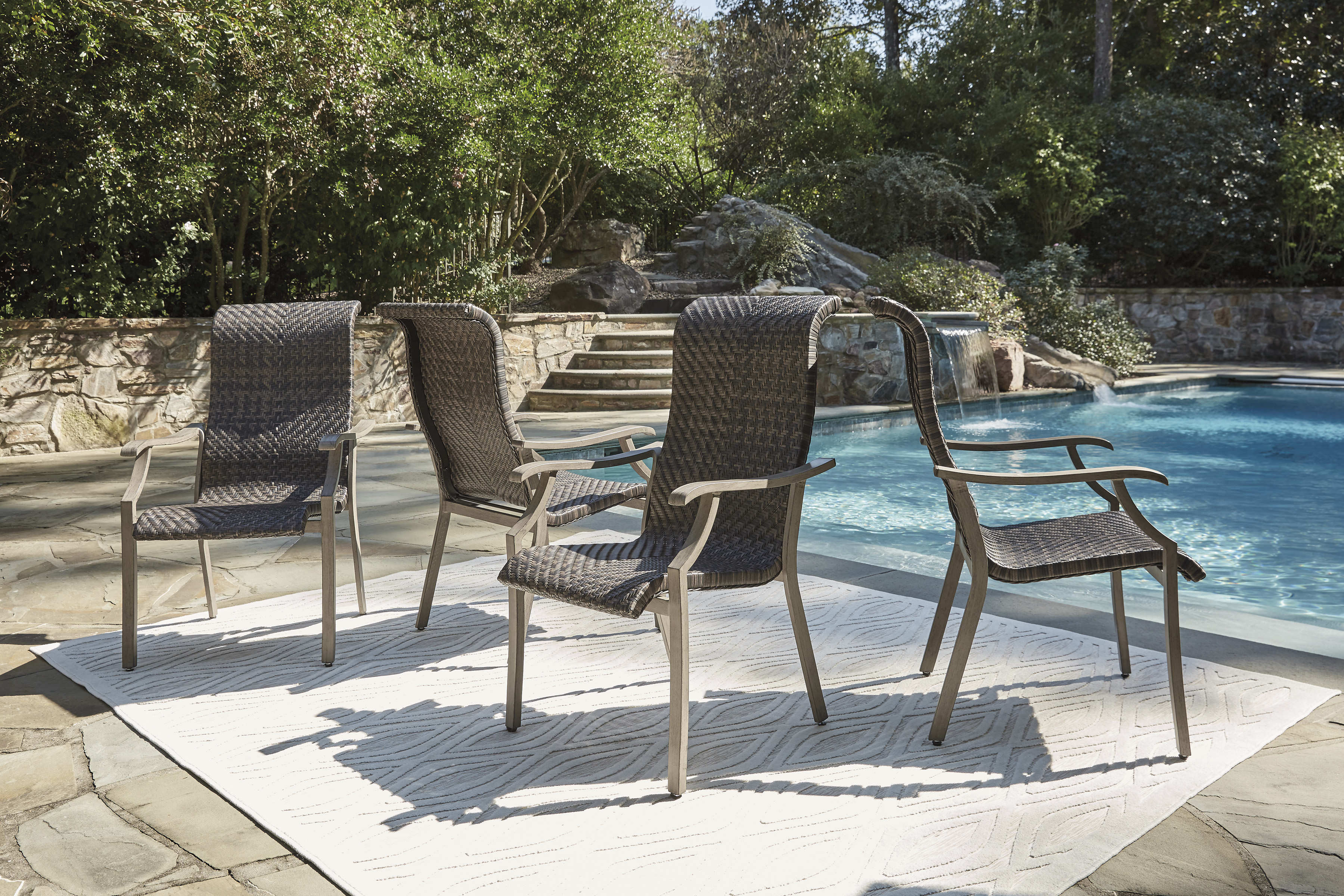Inspired by high-style modern farmhouse interiors, this outdoor arm chair conveys a warmth and sophistication that’s just your style. Curvaceously beautiful, with a high-back design, this head-turning outdoor chair is dressed to impress with an all-weather resin wicker seat that melds light and dark brown hues for tonal interest. Rust-free aluminum frame ensures plenty of seasons in the sun.