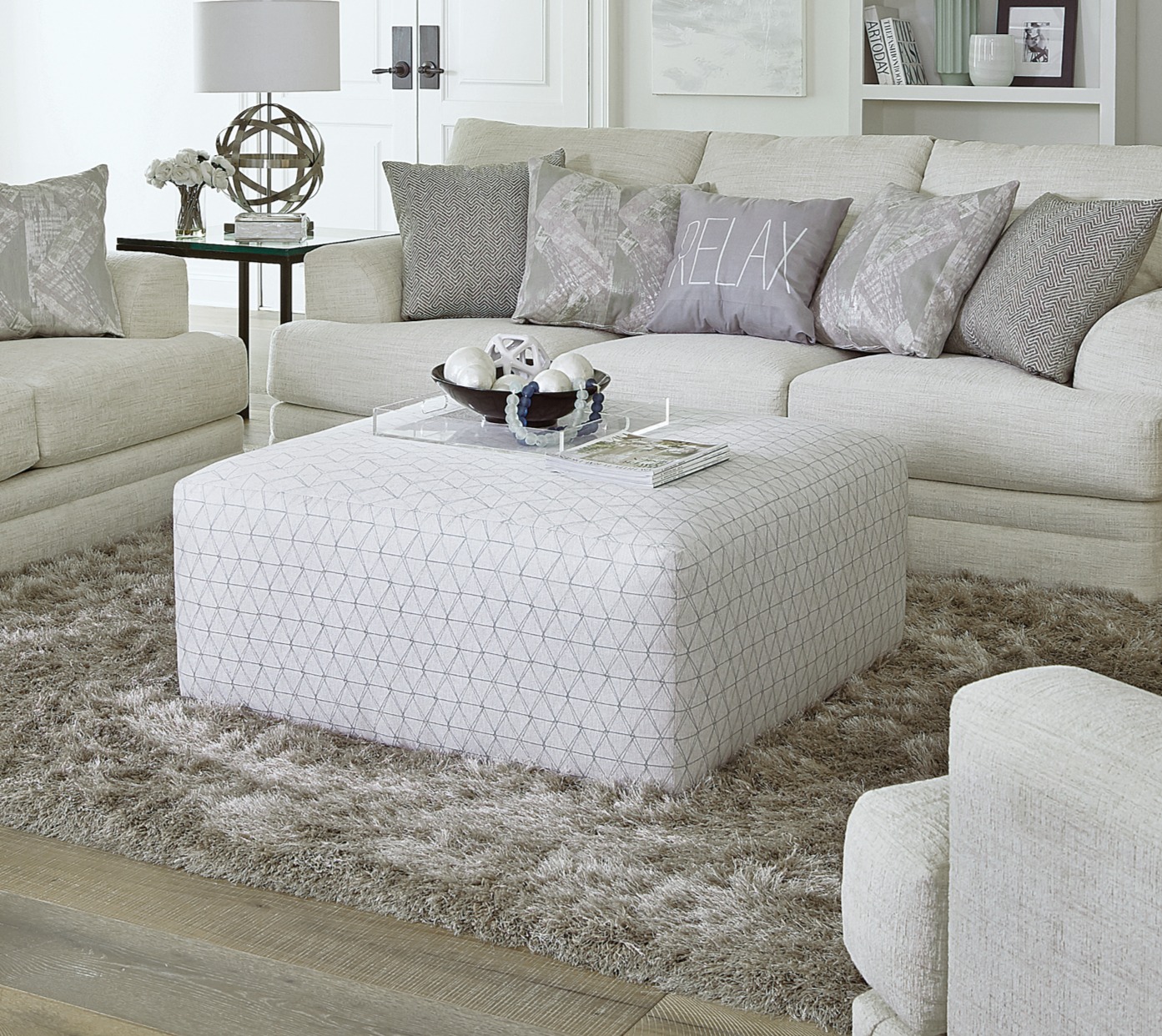 By Jackson FurnitureDimensions: 42"L X 19"H X 42"DClick Here for HD Image!SKU: 4470 > Click Here to See More of This Collection! <Zeller Cream Cocktail OttomanSKU: 4470-12$545.00PriceAdd to Cart